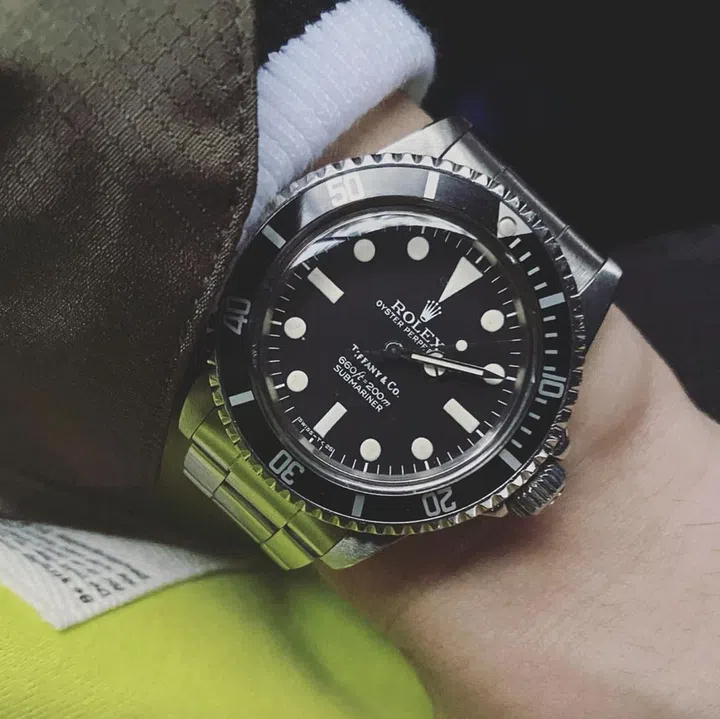 JJ的这款古董劳力士Ref. 5513,产于60至90年代之间,特别之处在于表盘上的“TIFFANY & Co.”字样。TIFFANY & Co.早期曾与顶级腕表签订合作协议,在店内销售的劳力士表盘均打上品牌“TIFFANY & Co.”字样,直至90年代合作关系结束,这一“传统”也画上休止符,也让这款古董劳力士腕表格外珍稀。根据过去佳士得名表拍卖会纪录,一只产于1989年的Ref. 5513便以超过5万新元的价格成交,而JJ这款则是产于1981年。(照片/@jjlin)