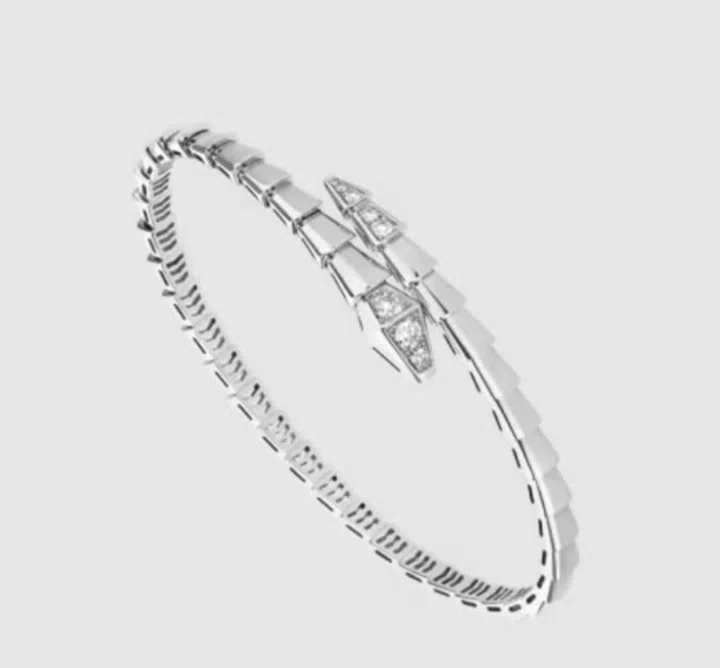 节目中出镜率颇高的另一款白金镶钻手链,出自宝格丽(Bvlgari)Serpenti Viper系列。宝格丽秉承意式美学,赋予作品神秘感性的蜿蜒之态,结合密镶钻石工艺为Serpenti Viper系列创造出了无限轻巧的可能。华丽不失简约,轻盈而独特的蛇鳞造型,为佩戴者玩转出多样魅力。除了Serpenti Viper系列手链,崔美娜秀也常搭配同系列白金耳环,让造型更加完整。