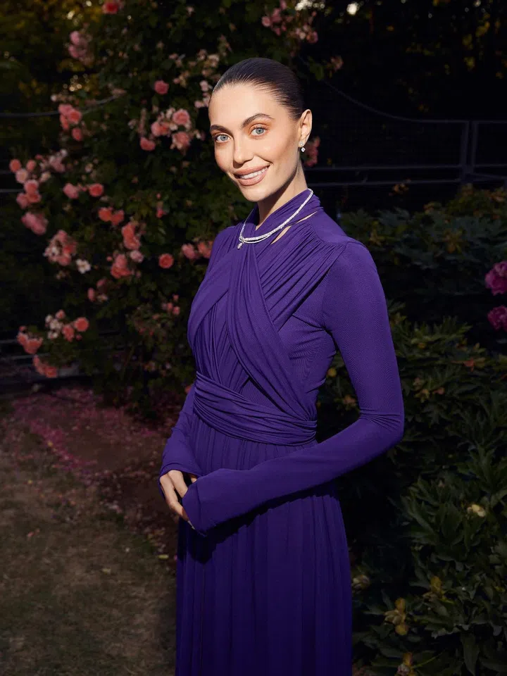 好莱坞影星Jessica Alba搭配LE JARDIN DE 尚美巴黎游园漫步高定珠宝套系丰饶梦田篇章的Blé麦秀两岐主题耳环相伴出席,并搭配了一条镶嵌有重达10.25克拉的祖母绿型切割D色FL净度IIa型钻石的同款项链,诠释温柔坚定的女性魅力。