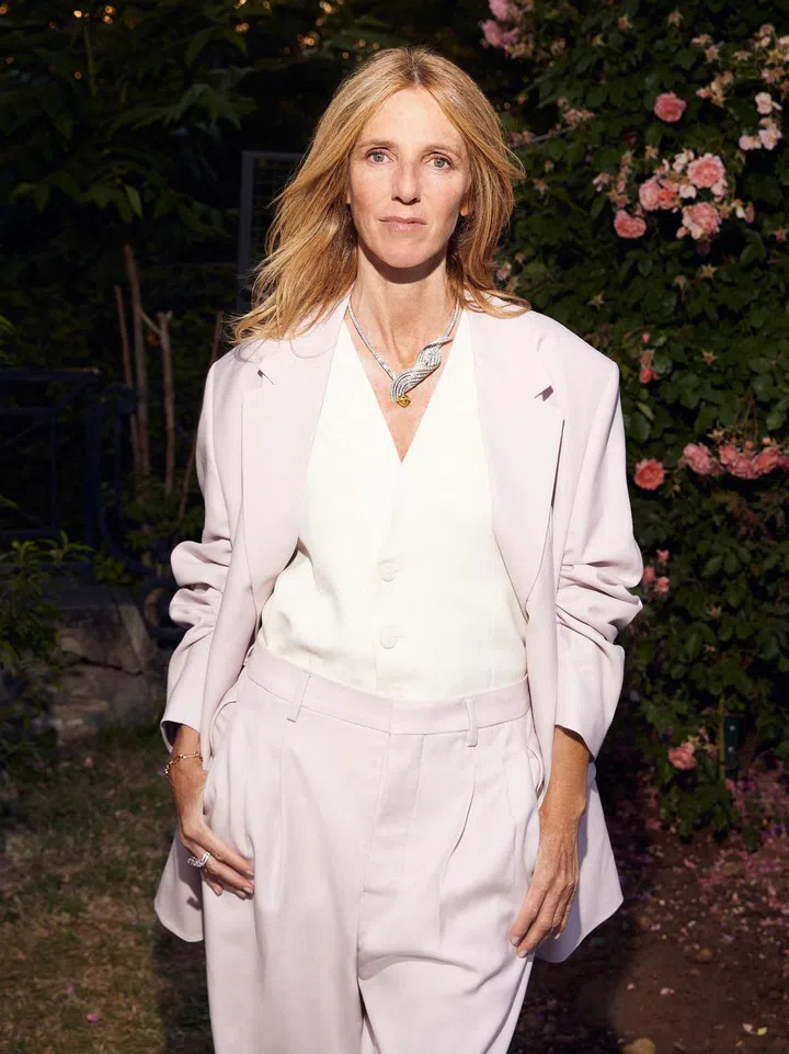 尚美巴黎世家挚友、法国影后Sandrine Kiberlain佩戴了来自LE JARDIN DE 尚美巴黎游园漫步高定珠宝套系万花流芳篇章的Arum海芋展叶主题项链,与指间的尚美巴黎 Joséphine约瑟芬皇后系列鹭羽•冠冕钻戒交相辉映,散发夺目光彩。