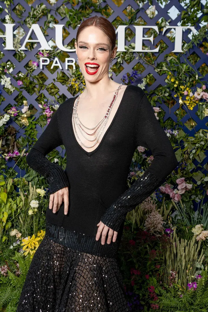 尚美巴黎世家挚友、埃及女演员兼模特Salma Abu Deif以Ondes et Merveilles 尚美巴黎瀚海史诗高定珠宝套系漩舞沧澜篇章的Déferlante涛澜生辉主题项链以及一副同款耳环盛装出席,风雅随行。