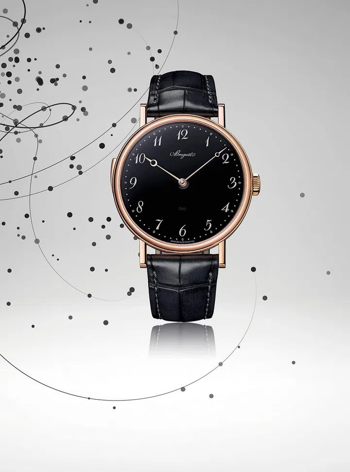 与外观相反,宝玑(Breguet)Classique经典系列7637三问腕表玫瑰金款的盘面设计简约,采用罕见的“大明火”珐琅工艺。数字时标、分钟刻度和宝玑标志以银粉勾勒于表盘之上。时、分由金质宝玑指针指示。通过9点钟位置的滑杆可启动三问报时功能。翻转腕表,可透过蓝宝石玻璃底盖欣赏到全手工雕刻的手动上链机芯,以及抛光精钢音锤。除了装饰方面的美学工艺,品牌在音簧、音簧座及音锤的位置革新,音簧固定在表壳中框,而非夹板上,这项获得专利的技术使得音色更为清澈剔透。