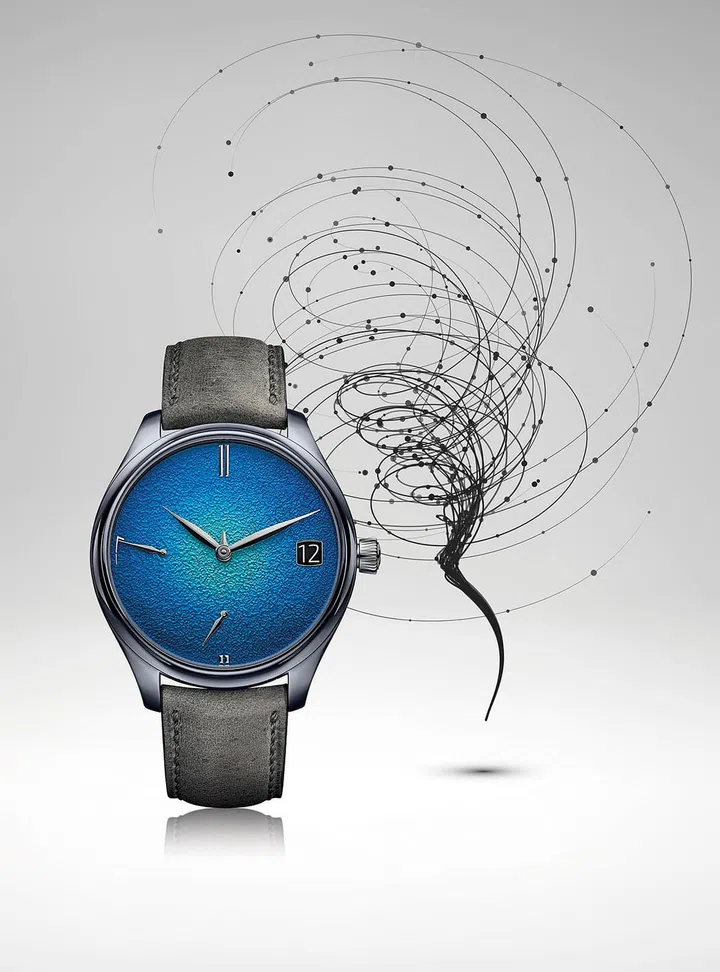 亨利慕时(H. Moser & Cie.)万年历被普遍认为是市场上最容易操作的万年历表款,能够在一天中的任何时间向前或向后调整日历。品牌今年推出采用钽金属打造的Endeavour Perpetual Calendar Tantalum Blue Enamel勇创者万年历钽金属蓝色珐琅腕表,表盘的金质底座,先以锤击形成的独特纹理,再以传统珐琅工艺装饰,达成其“深渊蓝Abyss Blue”烟熏效果。表盘布局方面,有品牌一如既往的简洁布局:3时位置的超大日历窗结合“闪历”功能,9时位置有动力储备显示,6时位置设有小秒针,在时针和分针底下有一支非常细小的指针用来指示月份,表背机芯内有品牌最标志性的闰年显示年轮。
