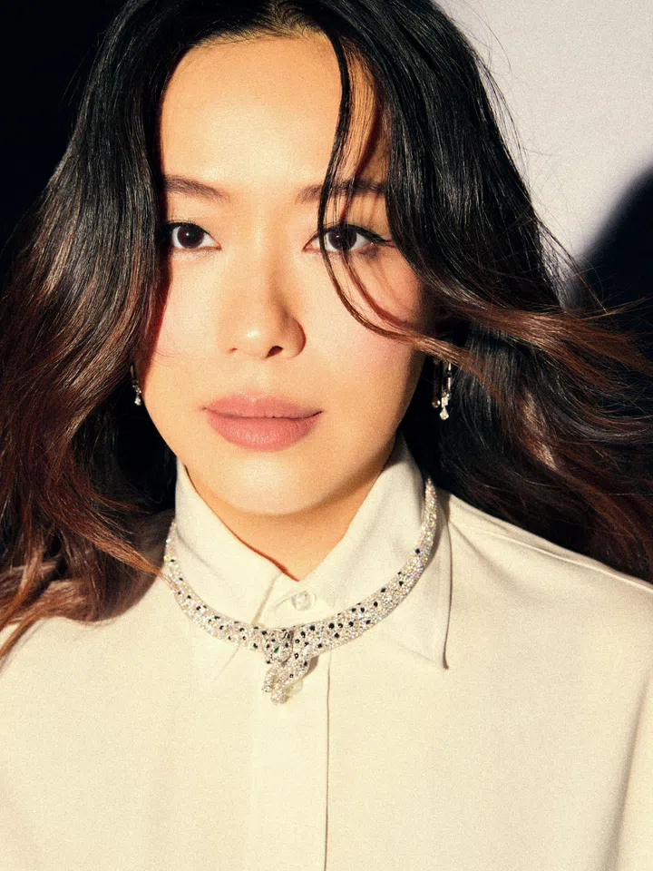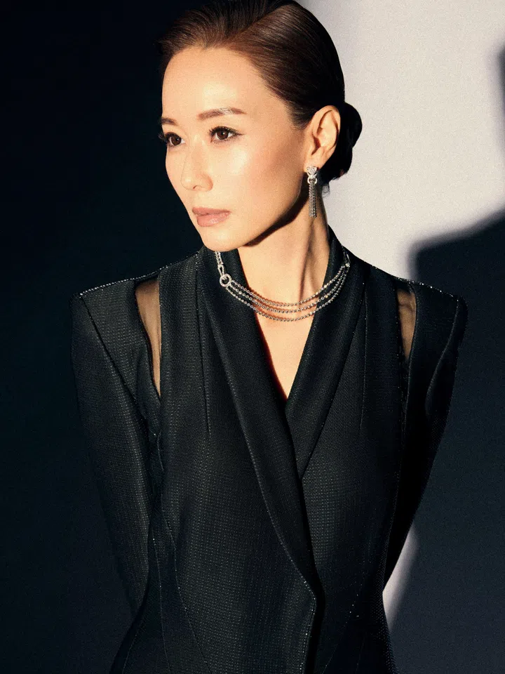 典礼造型:Joséphine Eclat Floral 白金钻石手镯; Joséphine Aigrette Impériale白金钻石耳环/Chaumet。