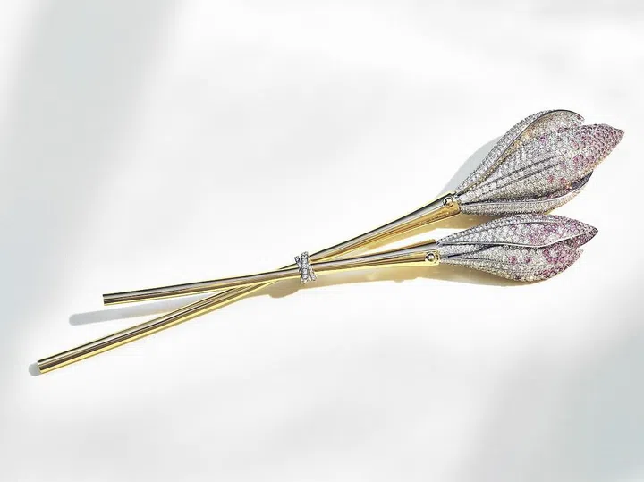 在和煦微风的吹拂下,春季悄然拉开万物生长的序幕,焕发出勃勃的生机。或含羞待放,或怒然盛开,奇花异卉竞相争妍。如此率性而极富不对称之美的自然景象,给予了蒂芙尼充分的遐想空间,春季主题珠宝由此诞生。