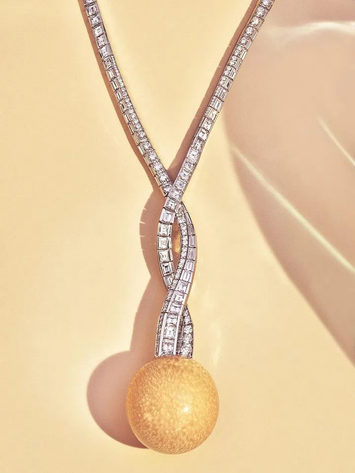 铂金镶嵌美乐珠、圆形及定制切割钻石吊坠