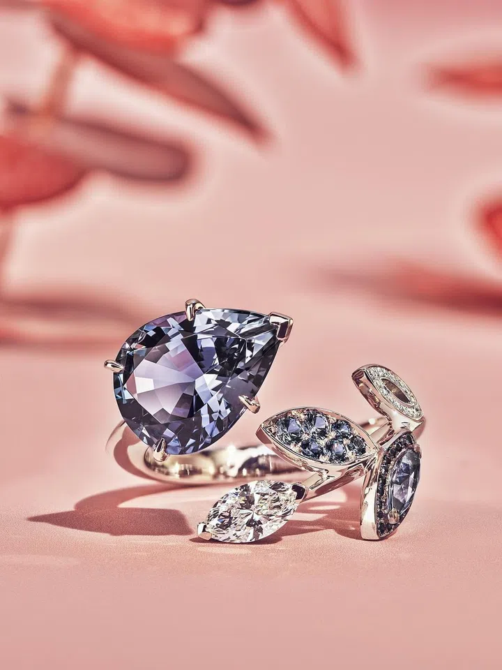 秋,不似夏的热情,不如冬的冷傲,不像春的荡漾;它的美明澈而入骨,是萧瑟的,是纯粹的,是淡泊的;恰似默默生长的蕨类植物,不求轰轰烈烈,但求细水长流。蒂芙尼还巧妙运用宝石的色彩与切割方式两者之间的相互作用,彰显轻盈之美。