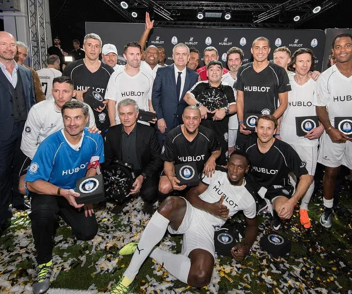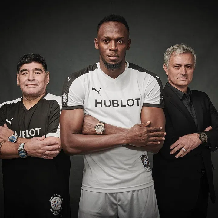 是什么让魔力鸟穆里尼奥、球王马拉多纳与飞人博尔特聚在了一起?宇舶表(Hublot)在巴塞尔举办了足球友谊赛,将这三位体坛大牌聚在了一起,也为宇舶表在巴塞尔钟表珠宝展上的新品发布造势,也为2018年世界杯打响前战。