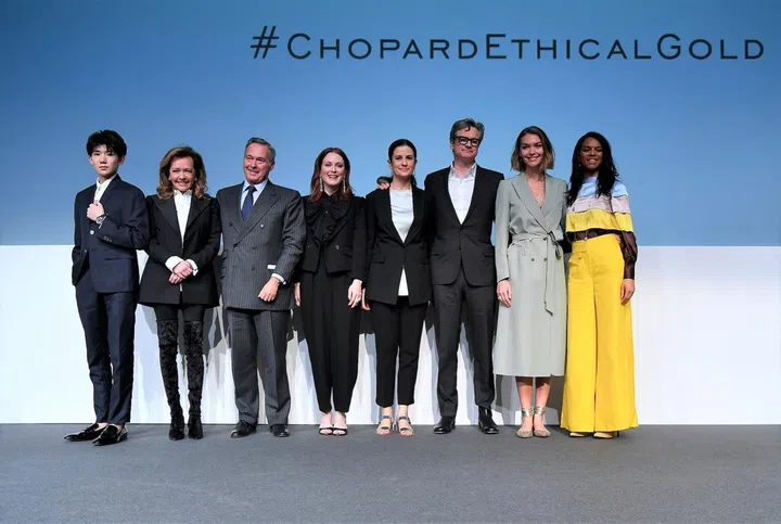 而在萧邦的“可持续发展的奢侈品之路”新闻发布会上,品牌宣布将在全线产品里使用的“公平金”,是获得“公平采矿”(Fairmined)认证的金。除了来自中国的明星王源,影帝Colin Firth、影后Julianne Moore与名模Arizona Muse、Noella Coursaris Musunka等众星皆来助阵。