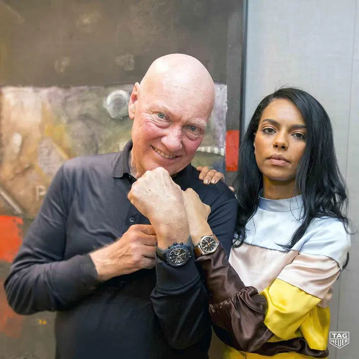同一天,模特Noella Coursaris Musunka又来到泰格豪雅(Tag Heuer),品牌CEO Jean-Claude Biver宣布她成为全新的品牌挚友。
