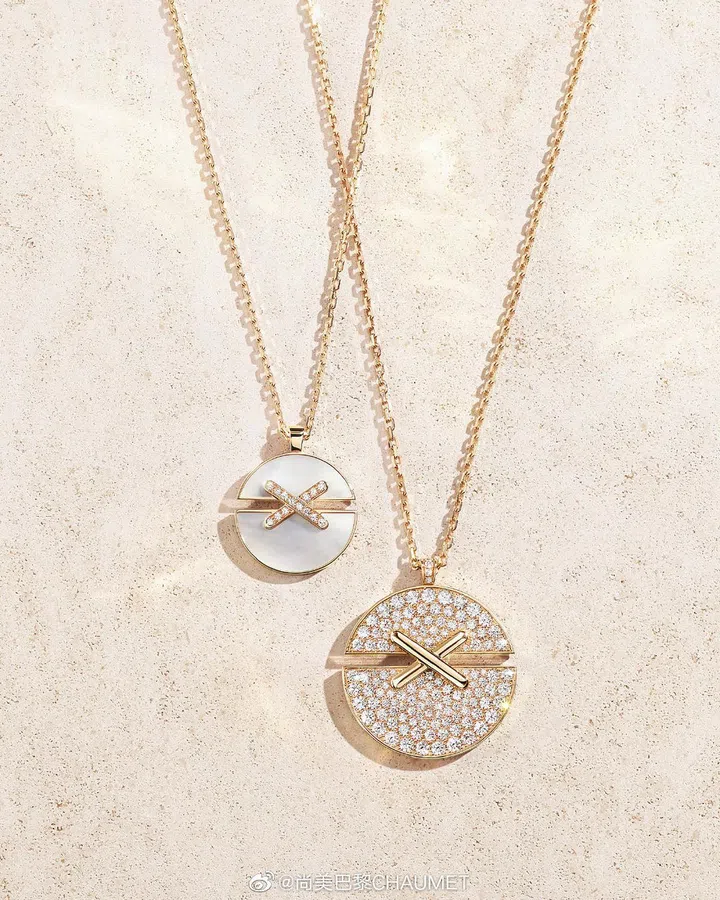 Liens缘系 • 一生系列是尚美巴黎(Chaumet)的标志性珠宝系列之一,以链接符号传递着世间每一份珍贵的情感。而Jeux de Liens Harmony系列则以圆形吊坠及“X”符号象征两个不同的人的奇妙邂逅。