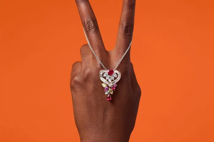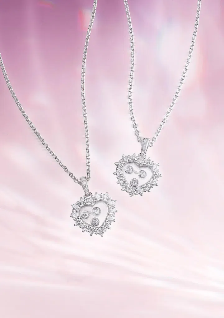 海瑞温斯顿(Harry Winston)Winston With Love系列将爱情的不同阶段完美诠释,颂赞真挚情感的无限可能。以精致华美的Winston Promise项链、戒指和耳环许下永恒誓言,玫瑰金镶嵌上钻石、红宝石、黄钻和粉红刚玉描绘出的浪漫唯美的心型图案。