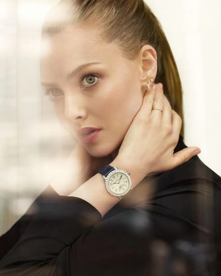 奥斯卡提名女演员Amanda Seyfried 自2019年起就担任积家“大工坊之友”,这次她佩戴Rendez-vous Dazzling Night & Day 约会系列日夜显示珠宝腕表为积家拍摄的一系列优雅照片。在 Rendez-Vous Dazzling 约会系列珠宝腕表的珍珠母贝表盘上,可看见昼夜显示设置在以金色星星点缀的彩虹色圆盘上;随着圆盘的转动,白昼变成黑夜,散发迷人卷曲光线的太阳与金色的新月慢慢交替。