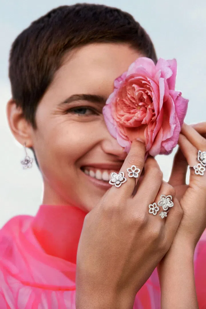 送给爱人永不凋谢的钻石花朵,象征爱情永恒保鲜。格拉夫(Graff)推出全新Wild Flower系列,以活泼明媚的主题风格向英式庭园致敬,展示如花盛放的时尚妩媚魅力。从镂空镶钻花朵设计,以至密镶繁花造型,Wild Flower系列多款美态撩人的钻饰不论是单独佩戴、混搭不对称的设计,还是叠戴如向阳盛放的群花,每一款钻饰也迸发迷人光芒。
