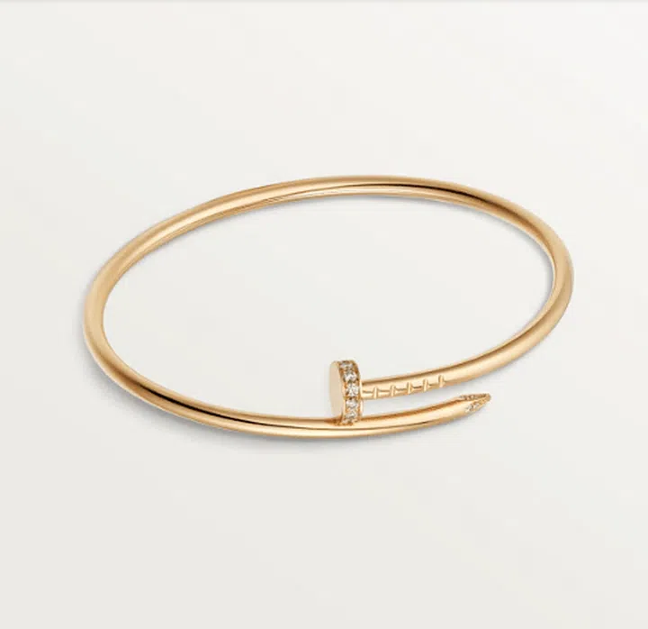 卡地亚经典Juste un Clou系列手镯透过钉头与尖端之间的精准扣环设计,提供轻松方便的穿戴功能;三种不同类型的贵重金属:玫瑰金,黄金或白金,让你能找到属于自己风格的甜蜜情侣环。