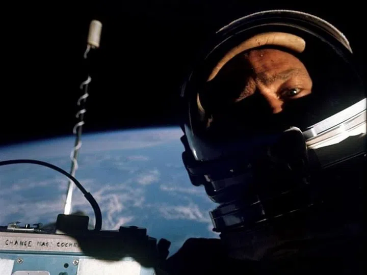 这是我的第一项太空任务,1966年11月。我们在拍摄星空图,那是一台紫外线相机,曝光时间是5 / 10 秒。但是夜里我们还在到处走动,阳光依然照耀。我们有如在旅游观光,于是我看着相机想着:“不如拍一张自己的照片。”这成为1966年第一张在太空拍摄的自拍照。要拍好真正的自拍照,相机必须连接到太空船才能够拍到。这也就变成最昂贵的自拍棒了。光线不是很好,但这不是我的错!这是太空船的方向,所以,是Jim Lovell的错,因为他在里头。