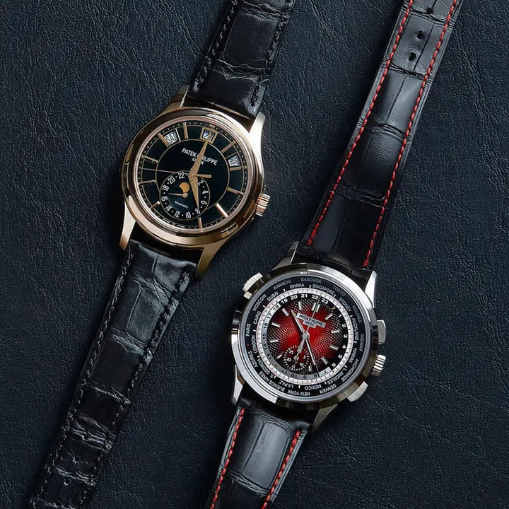 左至右: 百达翡丽Ref. 5205R蒂芙尼联名表款; 百达翡丽Ref. 5930G-011新加坡2019特別版腕表。