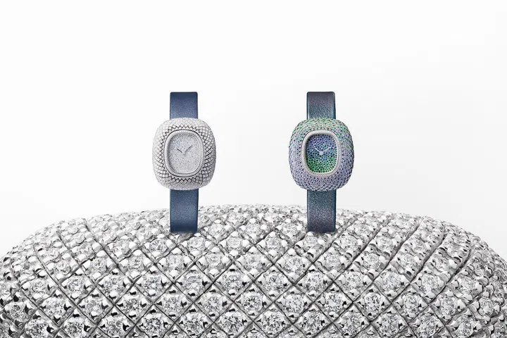 卡地亚(Cartier)全新Coussin de Cartier系列以精巧的枕形亮相,运用三角形镶嵌工艺让大小不一的美钻于表壳上展现律动感,最令人惊喜的是偏长型设计的限量表,以环环相扣的K金链结织成格网,再于其中置入品牌研发多时的创新元件,让表壳可以变形再收紧,回复原状,表壳柔软灵活的设计前所未见,白钻款与镶嵌祖母绿、蓝宝石、沙弗莱石、蓝色尖晶石的彩宝款各限量20只。