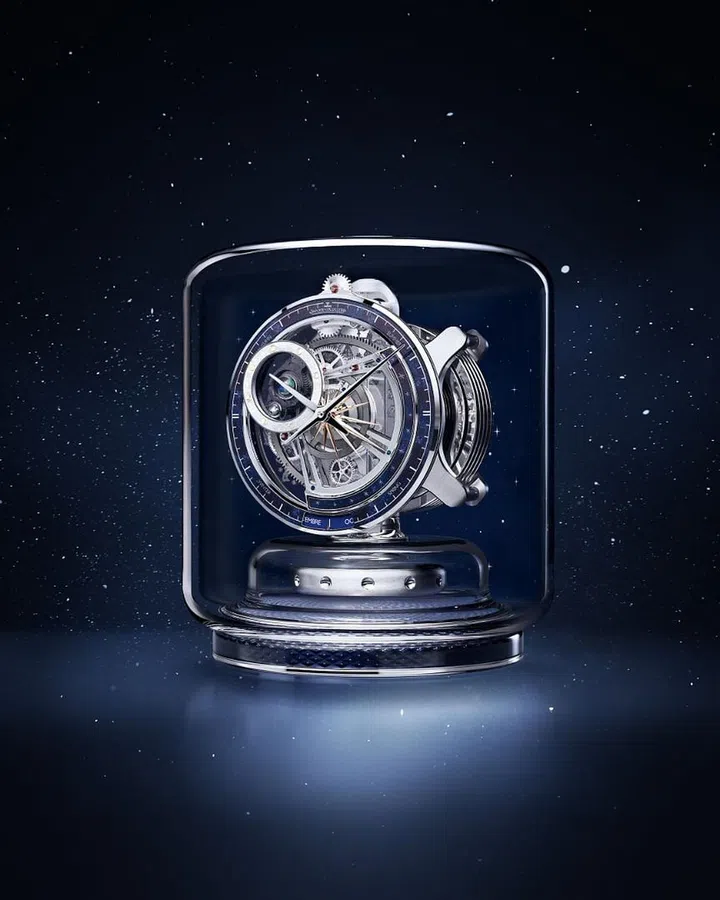 积家(Jaeger-LeCoultre)今年以“Stellar Odyssey星空传奇”为主题,致敬一直令大工坊制表大师们心驰神往的天文现象。积家大工坊的工程师和制表大师们创造出前所未有的可精确呈现地球、太阳及月亮运动的高复杂功能,研发出专为Atmos空气钟设计的积家590型超卓复杂功能机芯。此机械装置将这一恒动运转的Atmos空气钟带至全新维度——以三维形式呈现地球、太阳与月亮的相对位置及运动。被昵称为Atmos Tellurium天文仪空气钟的新作堪称有史以来最为复杂的Atmos空气钟,将精准技艺与精妙设计提升至新高度,积家珍稀工艺工作坊的工艺大师们更将各种工艺运用于润饰中,从微绘及激光镌刻到漆面工艺及陨石镶嵌,令全新Atmos Hybris Mechanica Calibre 590超卓复杂功能系列590型机芯空气钟不仅成为出色的时计装置,同时亦成为精妙的艺术品。