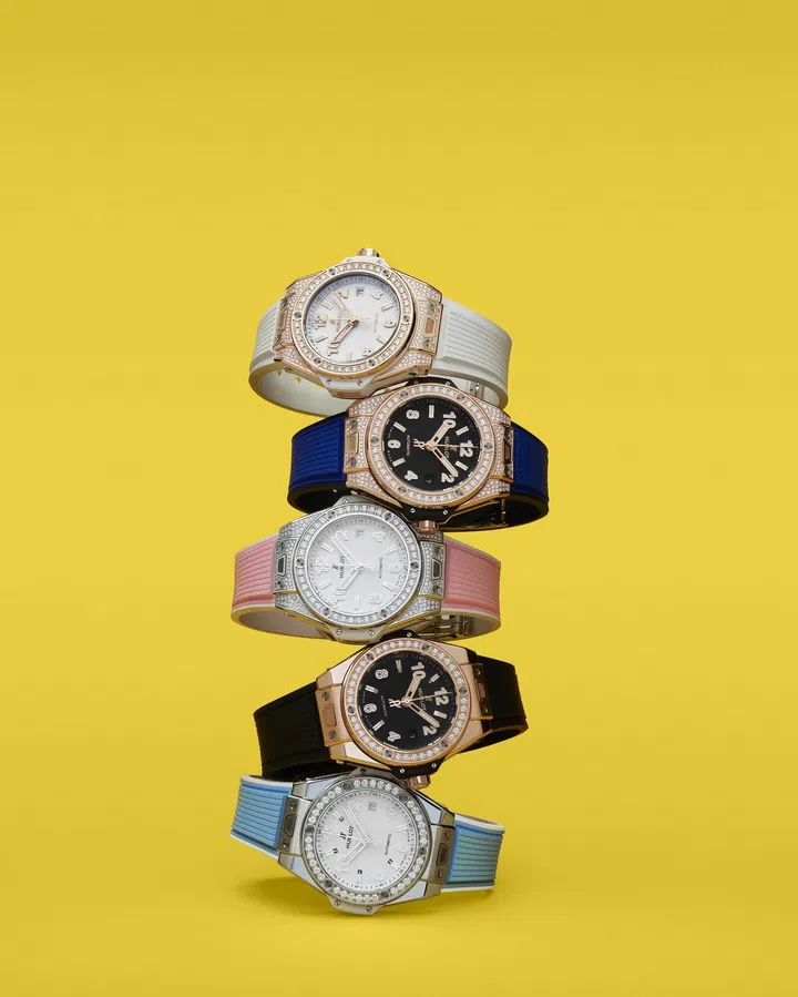 宇舶表(Hublot)Big Bang“一键式”33毫米款腕表拥有色彩丰富的橡胶表带,即晚礼服黑、航海风低调黑、纯白色、亮粉色、天蓝色、红色、宝蓝色、绿色以及橙色。橡胶表带搭配璀璨钻石,赋予腕表百搭型格。而采用波普风格的小牛皮表带则提供电光蓝、树莓粉及赤陶橙色以供选择,格外夺目迷人。表圈亦镶嵌了珍贵钻石,整枚臻品熠耀生辉宛如华美的高级珠宝,为佩戴者增添瞩目风采。腕表配备宇舶表专利“一键式”快速更换表带系统。佩戴者只需轻触按键,便可快速更换表带,别样型格,随即展现。