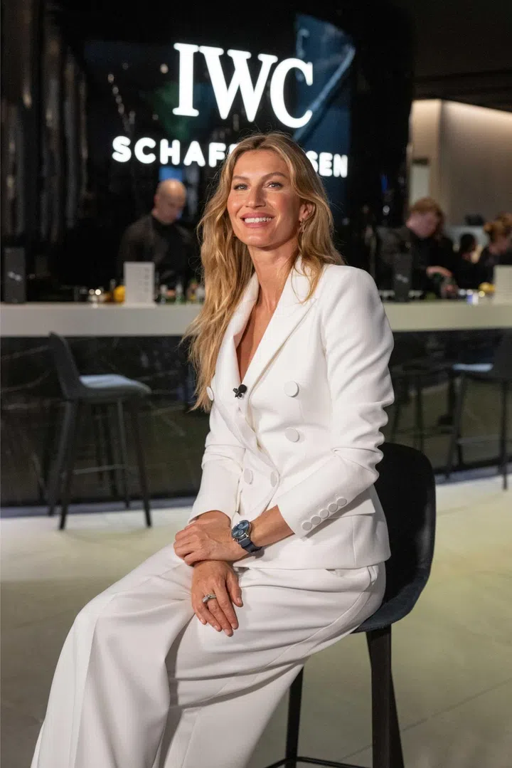 慈善家、《纽约时报》畅销书作家、国际超模、IWC万国表品牌大使吉赛尔·邦辰 (Gisele Bündchen)到访日内瓦“钟表与奇迹”(Watches and Wonders) 高级钟表展IWC万国表“致敬永恒”展厅。