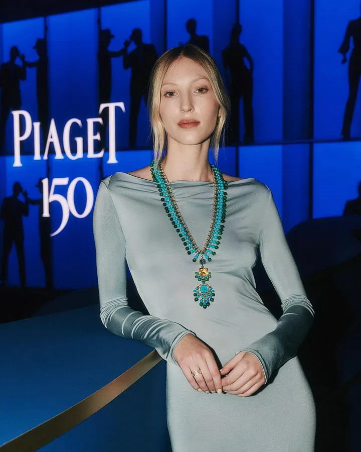 优雅精灵艾拉·理查德斯(Ella Richards)瞩目登场2024钟表与奇迹日内瓦高级钟表展伯爵(Piaget)展台,华美演绎150周年纪念版坠饰时计。绮丽宝石,点缀永恒时光,灵动流苏,展露高贵气质。