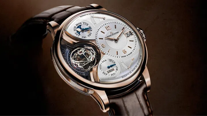 积家(Jaeger-LeCoultre)以其复杂功能腕表和创新技术著称。积家的Duometre Heliotroubillon三轴陀飞轮万年历腕表融合了388型机芯的三轴陀飞轮,呈现“陀螺”般的视觉效果。其三轴陀飞轮由163个零件组成,并采用陶瓷滚珠轴承支撑,重量不到0.7克。限量发行20只。