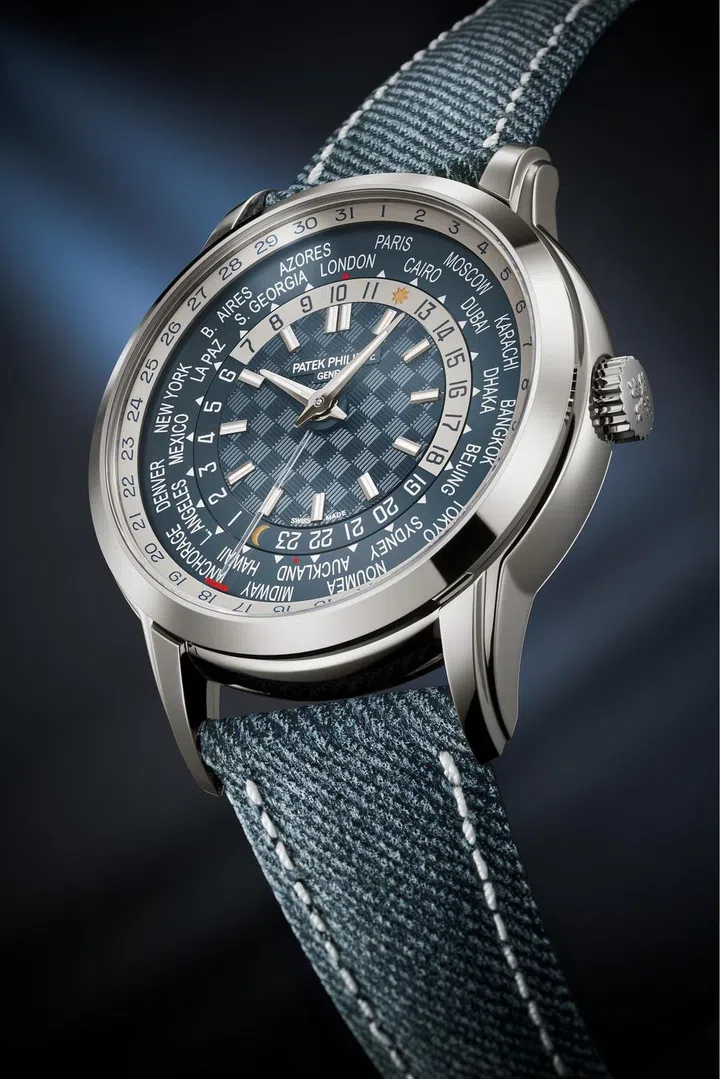百达翡丽(Patek Philippe)Ref. 5330腕表计搭载一项全球首创专利,配备与当地时间同步的日期显示,即由中央指针指示城市圆盘12时位置对应时区读取当地时间。为了尽可能使佩戴者体验实用功能与舒适感受,百达翡丽要求技术人员实现日期显示与当地时间的机械耦合,并应做到无需手动调校。其挑战之处在于需在以下两种日期变更场景中实现自动调节:越过午夜,即日期进入下一日;以及自西向东越过国际日期变更线(太平洋中一条南北向的假想线),即日期后退一日。Ref. 5330G-001腕表以其精美别致的外观而倍显出众。莹润表盘中央绽现优雅灰蓝色,饰以“碳纤维”图案。