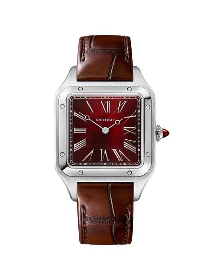 卡地亚(Cartier)以其奢华珠宝和高级腕表享誉全球。卡地亚的Santos Dumont Rewind限量版腕表,采用230MC型反向运转手动上链机械机芯,指针逆向运行,打破传统阅读时间的习惯。限量发行200只。