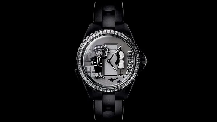 香奈儿(Chanel)手表创作工作室打造了J12 Automaton Calibre 6。这款配有钻石的异常手表配备了Calibre 6,这是由该手表制造厂设计和组装的新型机芯。在一个令人难以置信的技术壮举中,只需轻按按钮,其355个部件以一种细致组装的五层装饰形式将Gabrielle Chanel栩栩如生地展现出来。这是设计与制表技艺的完美平衡,通过优秀的材料和精致的细节得以体现。限量发行100只。