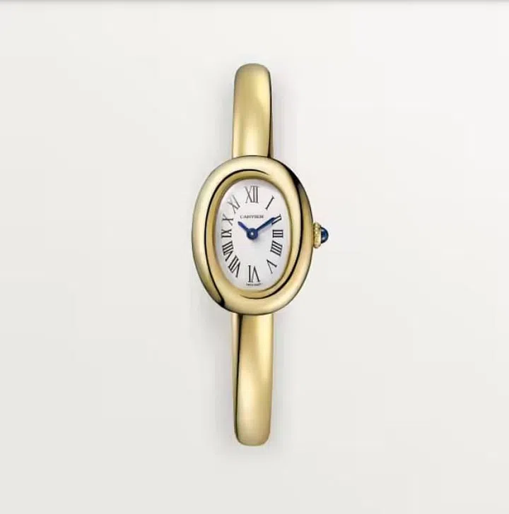 去年,此系列腕表的尺寸和功能均有所改变。表盘及其标志性罗马数字时标采用全新比例尺寸,圆润的黄金表壳如同华美缎带般环绕表盘。卡地亚拓展Baignoire腕表标志性椭圆形表盘的创意边界,并巧妙搭配手镯,贴合手腕。一款珍贵的“跨界”作品应运而生:既是腕表,也是珠宝。