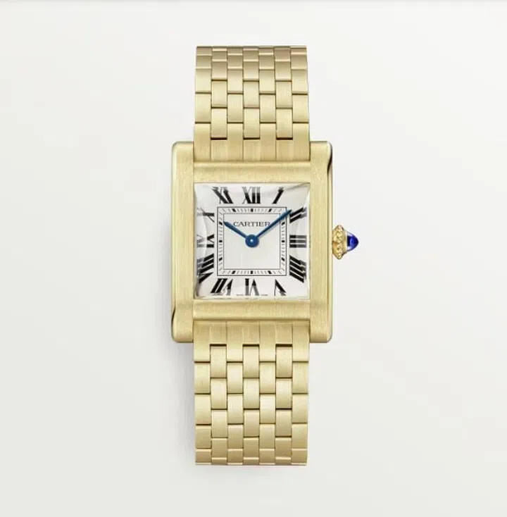 Tank腕表由路易·卡地亚(Louis Cartier)于1917年设计,并于1919年开始发售,是卡地亚和制表史上的典范杰作。今年,卡地亚特别推出搭载时分显示功能的表款,同时保留原版的整体比例和斜切合成蓝宝石水晶镜面。黄金表款搭配棕色鳄鱼皮表带,铂金表款搭配黑色鳄鱼皮表带。Cartier Privé系列亦开创先河,首次推出黄金表链款和铂金表链款,缎面和抛光处理表面相得益彰,呼应20世纪70年代的自由精神。表壳与表链合二为一,呈现细腻缎面质地。表耳和表壳边缘则采用抛光处理,与表身整体的流畅感互为呼应。